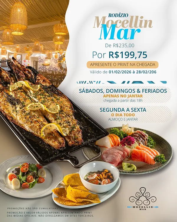 Qualidade total. Um tempero que sempre esteve presente em cada prato da Mocellin. No que é servido, como é servido, como você é recebido e como você sempre tem vontade de voltar. Agora damos mais um passo estendendo nossa gastronomia ao mundo delicioso dos frutos do mar. Mocellin Mar: Um restaurante na beira do mar transformando tudo que vem dele numa experiência inesquecível.